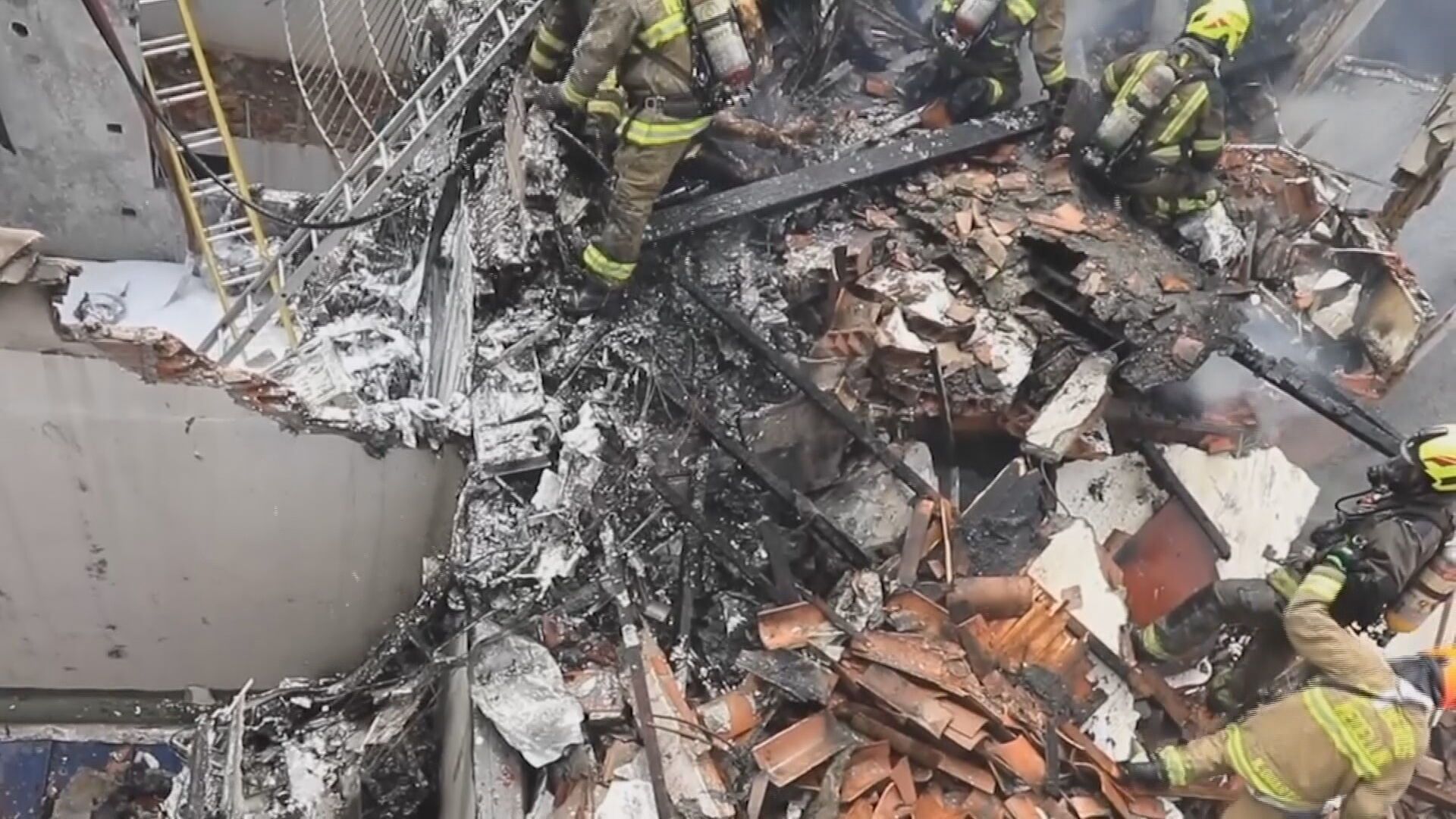 這架小飛機墜毀在當地一棟民宅的頂樓,現場一片焦黑,還冒出陣陣白煙,當局也出動了消防隊員、在現場滅火。
