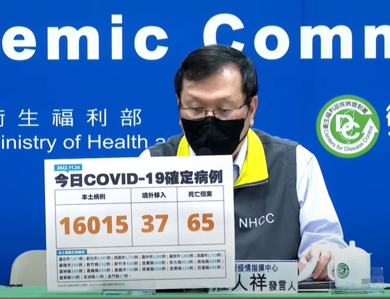 指揮中心指出,今日新增65例本土病例死亡個案,為34例男性、31例女性,年齡介於50多歲至90多歲以上,皆屬重度感染、63例具慢性病史、40例未接種3劑以上COVID-19疫苗。確診日介於今(2022)年9月28日至11月21日,死亡日期介於11月3日至11月21日。