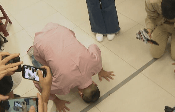 國民黨基隆市長候選人謝國樑26日晚間自行宣布勝選,發表感言時,他不但激動哽咽,還當場下跪伏首感謝上帝。