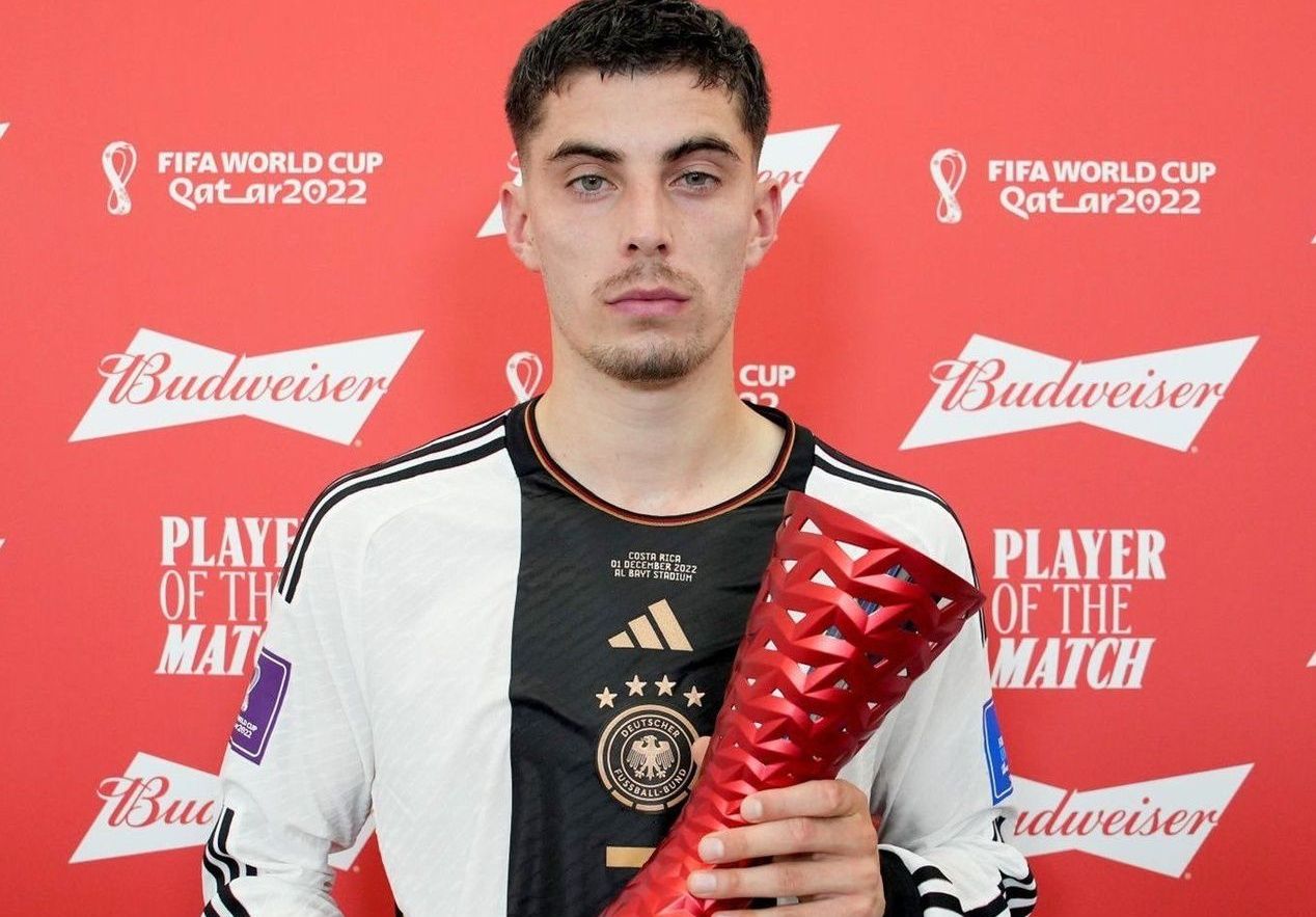 哈費爾茨2日於第67分鐘才替補上陣,然而登場沒多久,隨即在第73、85分鐘連續射門得手,讓原本1:2趨居落後的德國,一口氣將比分超車,最終反以1分差奪勝。但是小組賽取前2,因此落居分組第三的德國,自2014年捧起金盃後,2018、2022連續兩屆世足皆止步小組賽。