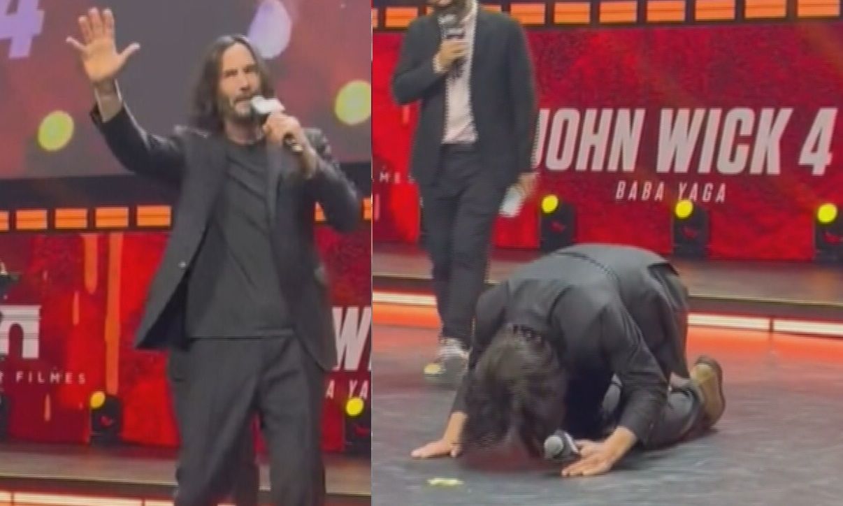 基努李維近日宣傳他的新電影「捍衛任務4」,面對現場熱情的影迷,他在台上先是深深鞠躬,雙手合十回應粉絲的支持,接著竟然當眾雙膝跪地,還連續磕了三次頭,台下影迷立刻大聲尖叫。