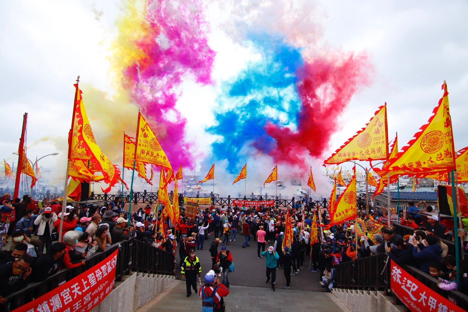 台中鎮瀾宮大甲媽祖400年來首次跨海到澎湖遶境會香,澎湖鄉親信眾們卯足全力誠心迎接聖駕。澎湖島最西邊西嶼外垵民眾分外熱情,先是在第一天出動300多艘漁船外海上列隊鳴炮迎接大甲媽祖聖駕,第二天更準備彩煙砲聲沖天響徹雲霄,熱烈歡迎大甲媽祖的到來。