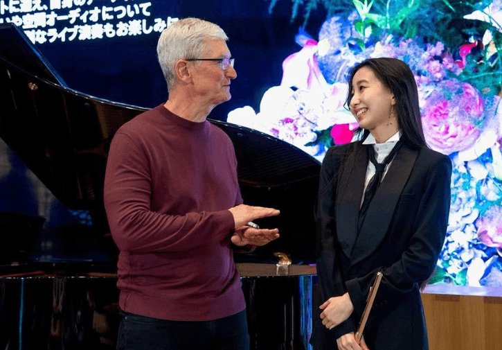 現場不僅有許多賓客到場,連時隔3年,剛好到日本拜訪供應鏈廠商的庫克,也親臨現場,坐在第一排欣賞表演,還上台與心美交談,庫克會後也在個人推特發文,稱讚是一場令人驚豔的表演,並放上心美的照片。