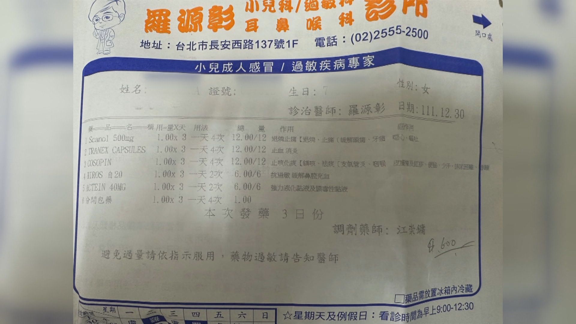 這一包藥在視訊看診完後,放了一週,至今無人來領,連要繳的600元看診費用,也無消無息,北市診所碰上外籍確診病患,沒想到劇情超展開。收治該個案醫師羅源彰:「碰到一例其實就很恐怖,因為你根本不曉得他是什麼樣背景跟身分,最擔心就是說,一個美籍中國人然後來台灣做什麼事情,目的是什麼,都不曉得。」