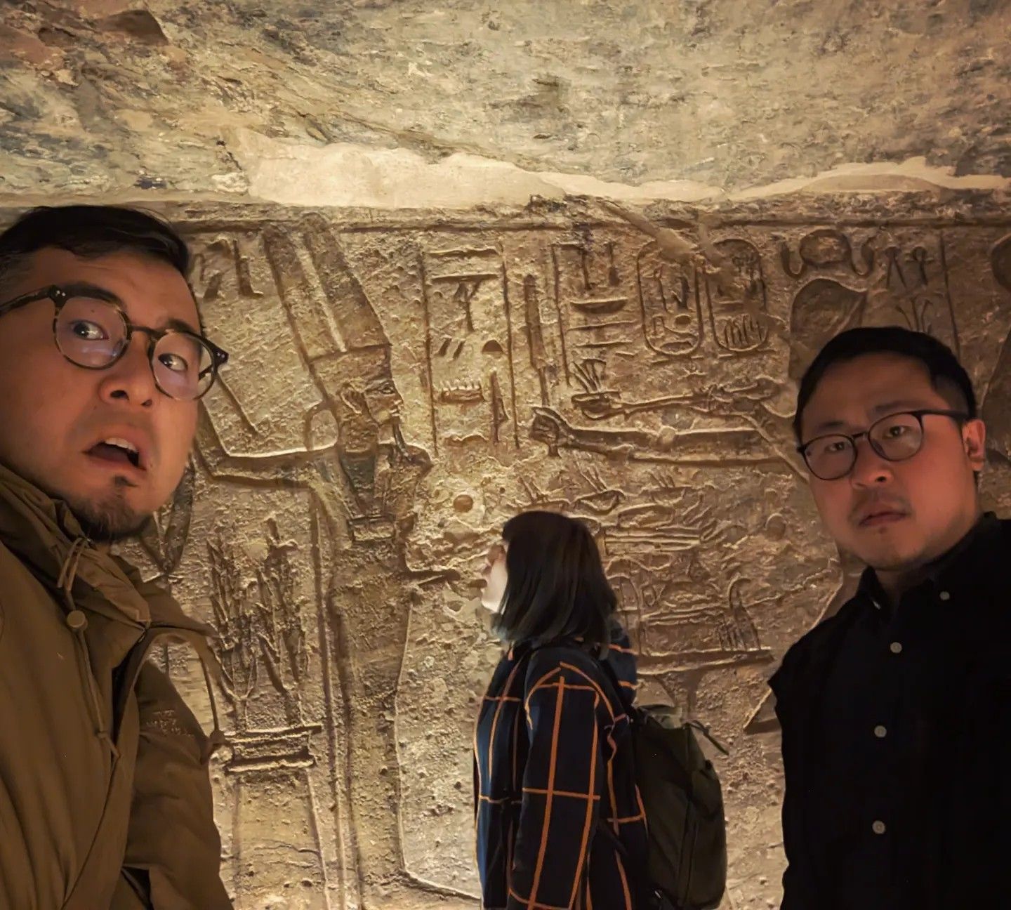 不料,海關一檢查就是一個多小時,期間有些東西被摔破,留下被認為有問題的物品,3人一度順利登機,卻又被航警偕同空勤人員帶下飛機進入小房間。陳炫劭指出,這段時間又來了5、6組人員來檢查菸灰缸等紀念品,其中亦有人號稱是專家,「用美工刀刮所有東西、噴酒精指甲油還含我們的法老王原子筆」,經審視,最後有3個從藝品店買的紀念品被認為有問題,對方不斷詢問在哪購買、是否有證明,陳炫劭則出示與市集老闆的合照與名片澄清。