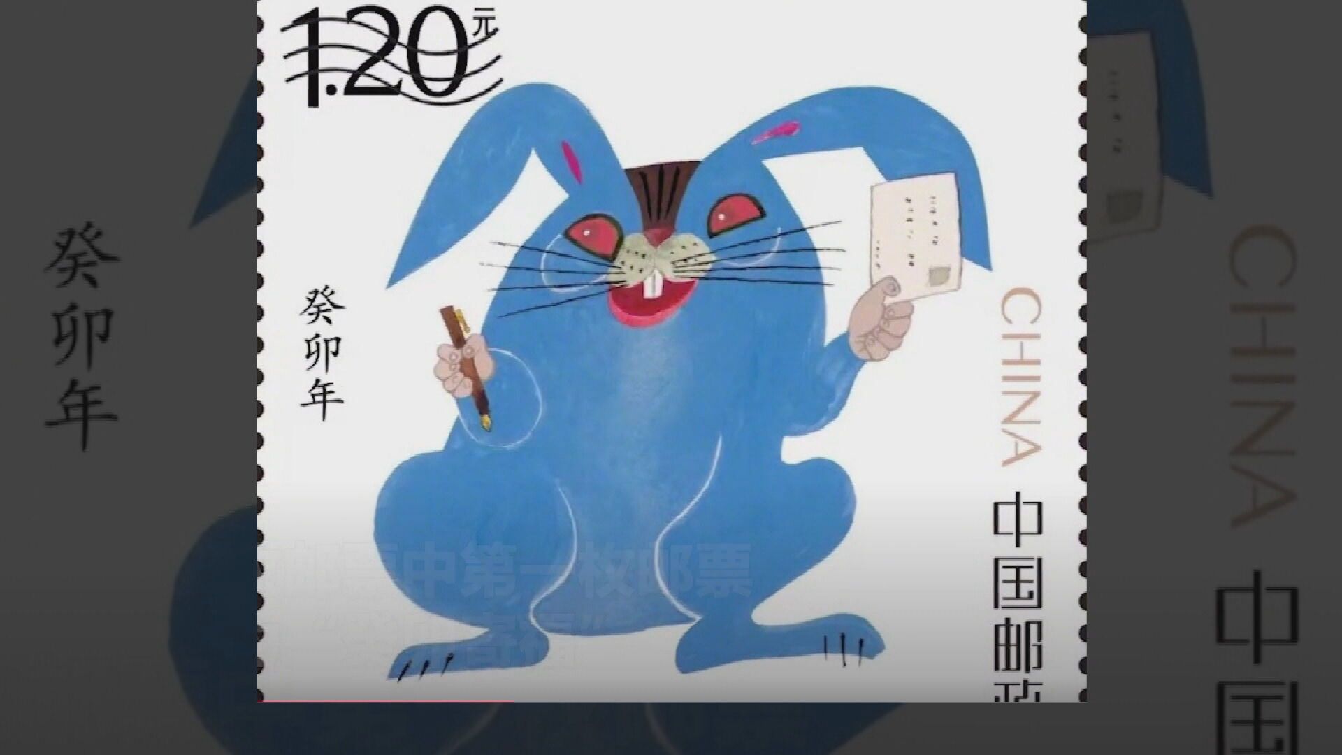 中國郵政今年推出一套兩枚的兔年生肖郵票,其中一張「紅眼藍兔」郵票,被批看起來很邪門,不過藍兔郵票引發熱議後,已被搶購到斷貨。