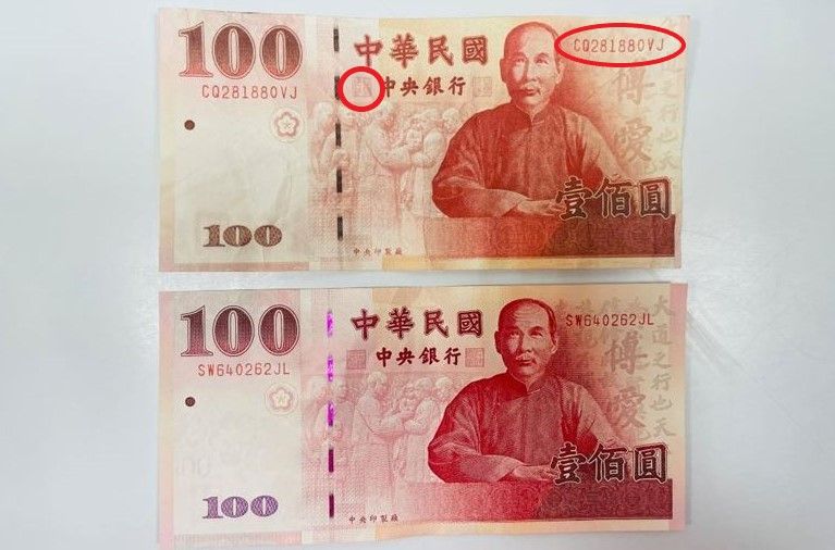 年關將到,近日有千元假鈔流竄全台,日前雲林檢警循線逮到兩名嫌犯移送法辦,未料再傳出有店家收到百元假鈔,其流水序號皆為「CQ281880VJ」,北港警分局獲報後開始偵辦,並提醒民眾收到紙鈔要留意防偽;另有店家也自我提高警覺,看到「880」百鈔就不敢收。