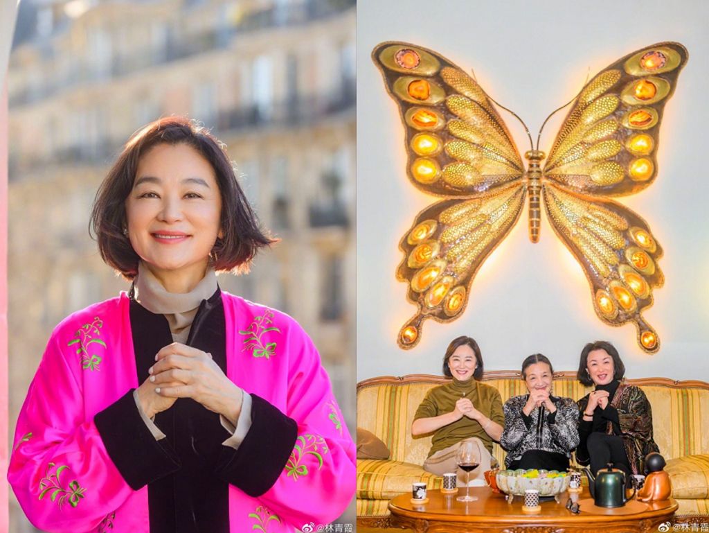 林青霞透露自己人在巴黎,在遠方遙祝大家平安、健康、快樂,以往拍照經常是C位的她,今日秀出與金馬影后江青及主持人金星的合照,77歲的江青坐中間,林青霞則與金星分坐兩邊,3人拱手作出拜年姿勢,後方還有大隻蝴蝶裝飾,金碧輝煌相當有氣勢。