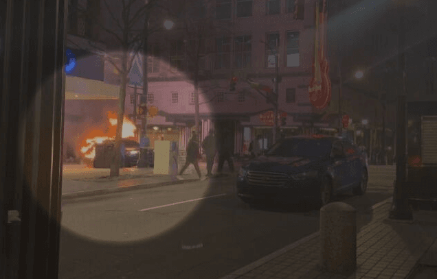 蒙面黑衣人士朝著亞特蘭大警察基金會大樓,丟擲石頭,再向大門拋擲煙火,附近的警車也一併遭殃,冒起白煙起火燃燒,美國亞特蘭大 21日,爆發大規模示威抗議,市中心的店家門窗破碎,提款機被砸壞,所幸沒有傷亡,警方抵達後強勢清場,已經有6人遭到拘捕。