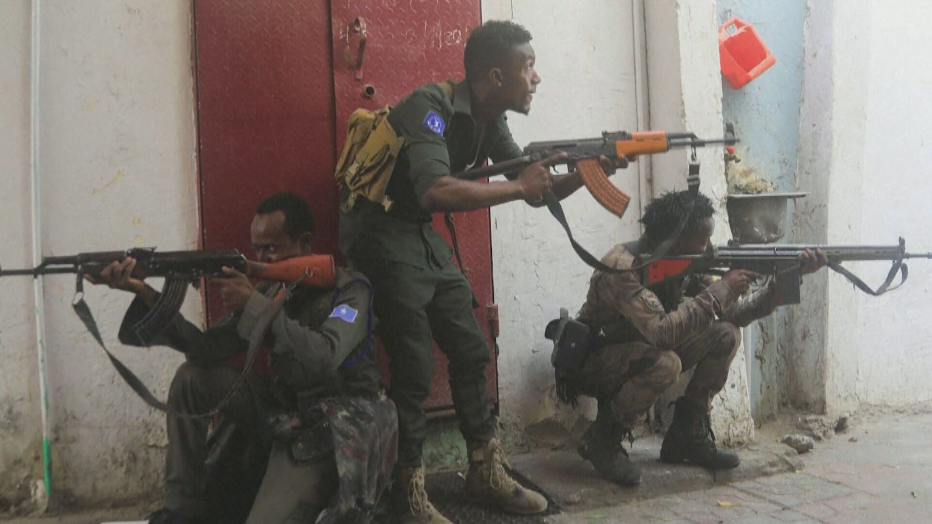 根據目擊者的描述,恐怖組織青年黨的武裝人員,22日中午,闖進市長辦公室所在的街區,先引爆炸彈之後,持槍掃射,並且想闖入政府大樓。市府的安全部隊和武裝份子激烈交火,擊斃恐怖分子。