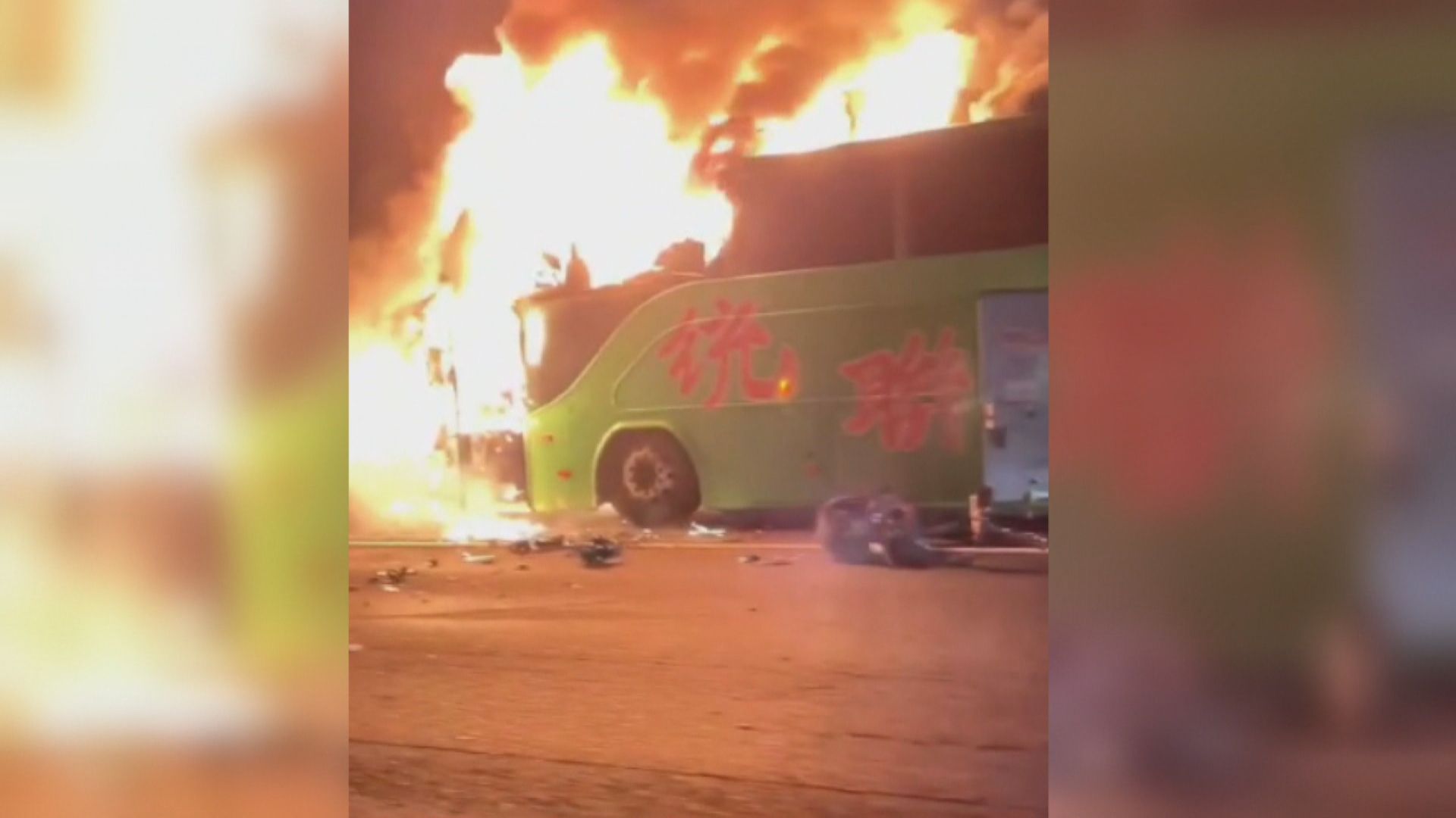 國道交通組長張明光說明,22日凌晨4點57分,一輛駕駛小客車的46歲陳姓女子疑似酒駕自撞護欄,並失控打橫在車道上,才引發統聯客運和5台轎車連環追撞,統聯客運車更因油管破裂起火燃燒,統聯司機與小客車女乘客因逃生不及當場喪命,釀2死9傷。