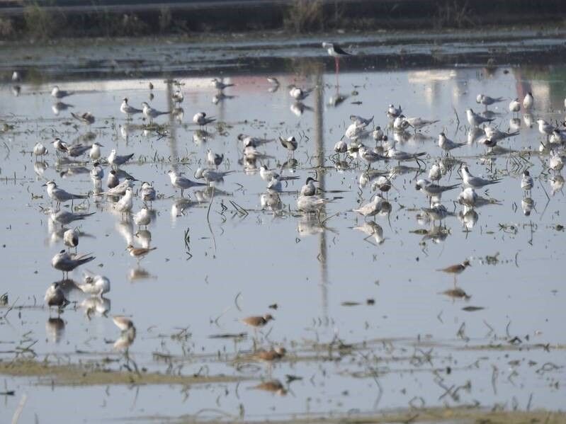 特生中心表示,會來拜訪紅蔥田的嬌客除了過境的長趾濱鷸(Calidris subminuta)、鷹斑鷸(Tringa glareola),還有提前來台度冬的「鳥界林志玲」高蹺鴴(Himantopus himantopus)」和體態輕盈的東方環頸鴴(Charadrius alexandrinus)、小環頸鴴(Charadrius dubius)和黑腹燕鷗(Chlidonias hybrida)等候鳥。
