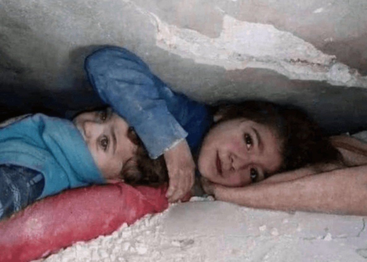 黎巴嫩常駐聯合代表薩法(Mohamad Safa),7日透過推特分享一張照片,照片顯示2名兒童,雙雙被一大片瓦礫壓住,而年僅7歲的小姊姊,用她的手護著另一名幼童的頭部,薩法表示「被困在廢墟下17個小時裡,這個7歲小女孩一直把手放在弟弟的頭上保護他」,根據薩法發文的內容,這2人已經平安獲救。