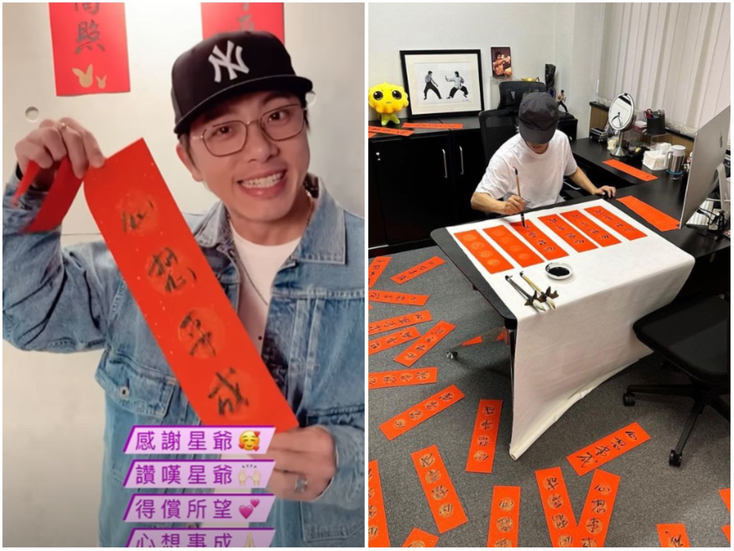 60歲的香港喜劇天王周星馳(星爺),去年10月無預警開通IG帳號,他在大年初二時揮毫書法春聯,要從貼文留言中選出20位有緣人免費送出,吸引許多藝人參與,其中坤達、賈靜雯幸運抽中,坤達昨(8)日也在社群開箱,開心亮出星爺寫的「心想事成」春聯。
