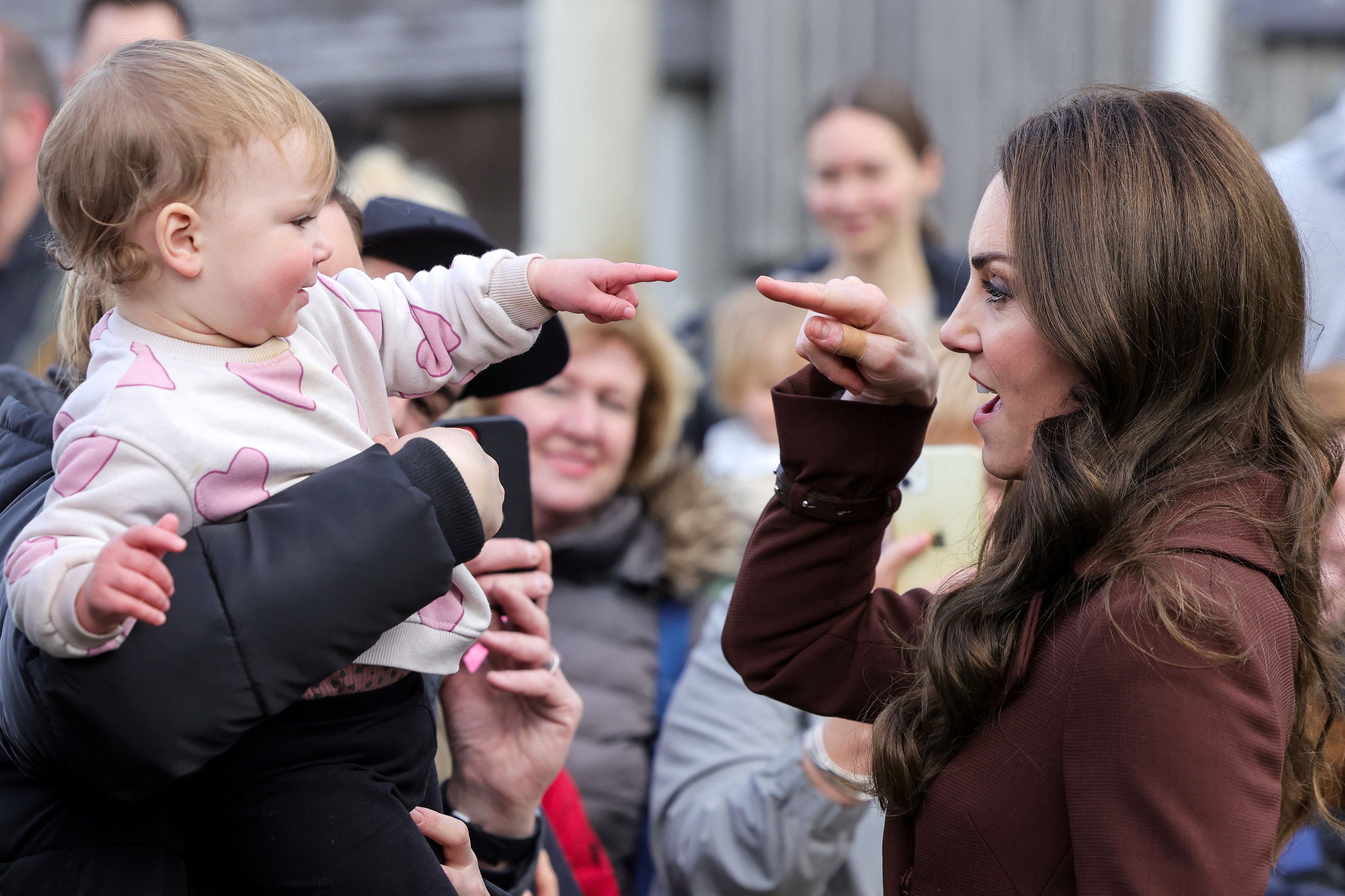 威廉王子與凱特王妃育有3名小孩,分別是喬治王子、夏綠蒂公主、路易小王子,3名小孩公開露面時,除了表現出活潑率真的一面,也十分有禮貌,可見威廉王子與凱特王妃對於「搞定」小孩很有一套。近日威凱夫婦參訪康沃爾,其間凱特跟一名女嬰玩得不亦樂乎,女嬰也用小小的食指觸碰威廉的王子的鼻子,萌度破表。