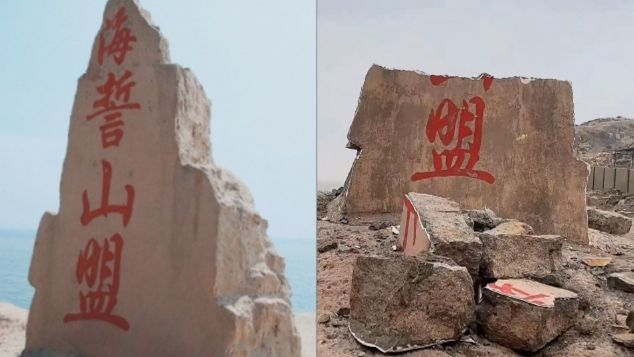 中國浙江東極島有一座「海誓山盟」石碑,是情侶旅遊打卡聖地,近日被爆料在西洋情人節(14日)前夕碎裂,只剩根部的「盟」字佇立在冷風中,遭網友揶揄「估計是謊話聽多,受不了自己崩潰了」,負責管理東極島的政府工作人員則否認石碑是情人節前夕崩壞。