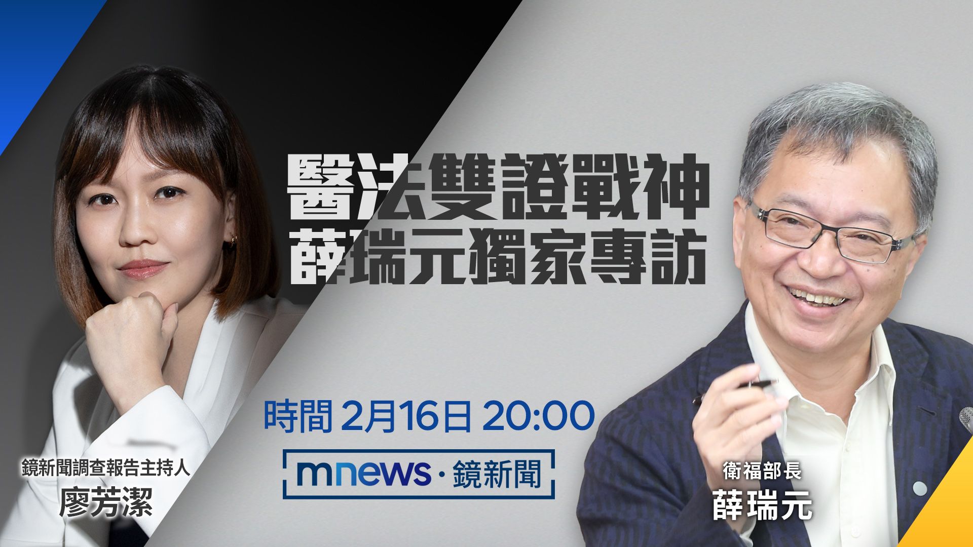 衛福部長薛瑞元,大砲性格、有話直說,九合一選前他屢次澄清、說明政策,槓上立委還有鴻海創辦人郭台銘。面對防疫、政策的扭曲、抹黑,薛瑞元選擇直球對決,今晚鏡新聞調查報告,主持人廖芳潔獨家專訪衛福部長薛瑞元。