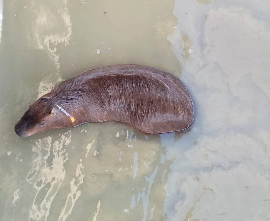 然而,救援人員到達現場後,水豚泡在水中遲遲不肯上岸,動保所人員只能出動麻藥吹箭,才成功帶該隻水豚上岸。上岸後,水豚被安置於動保所留置,經動保所查詢,水豚的飼主為當地一家休閒農場業者,水豚疑似為「偷溜出門」。動保所事後也聯繫飼主領回,並提醒業主加強管理。