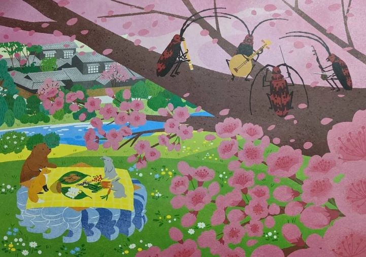 民眾收到新一期的台電帳單,發現信封換了新樣式,變成有春天氣息的櫻花圖案,熊和兔子坐在綠油油的草地野餐,不過櫻花樹上的昆蟲更顯眼,4隻還分別演奏樂器和指揮,觀察昆蟲外型,讓他一度以為是蟑螂。