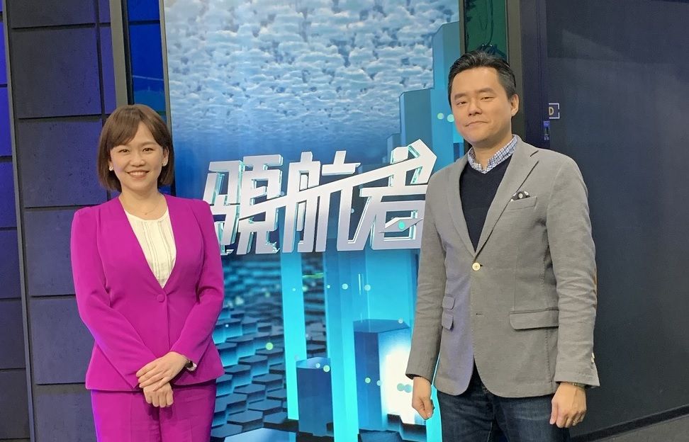 秀泰影城總經理廖偉銘(右)分享電影產業甘苦談,左為《領航者》主持人廖芳潔。