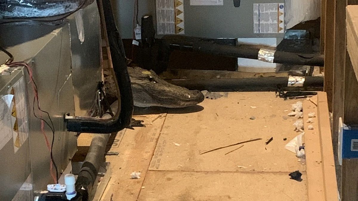 大多數人會將家中閣樓作為儲藏空間,或是布置成自己的小天地,但在美國北卡羅萊納州(State of North Carolina)的某間住宅卻不是這樣,有位政府官員到現場視察施工作業時,在角落看到一個「鱷魚標本」,而當手電筒照在「標本」頭上時,鱷魚的眼睛突然睜開,才發現是一隻活生生的鱷魚,把現場的所有人嚇壞了。