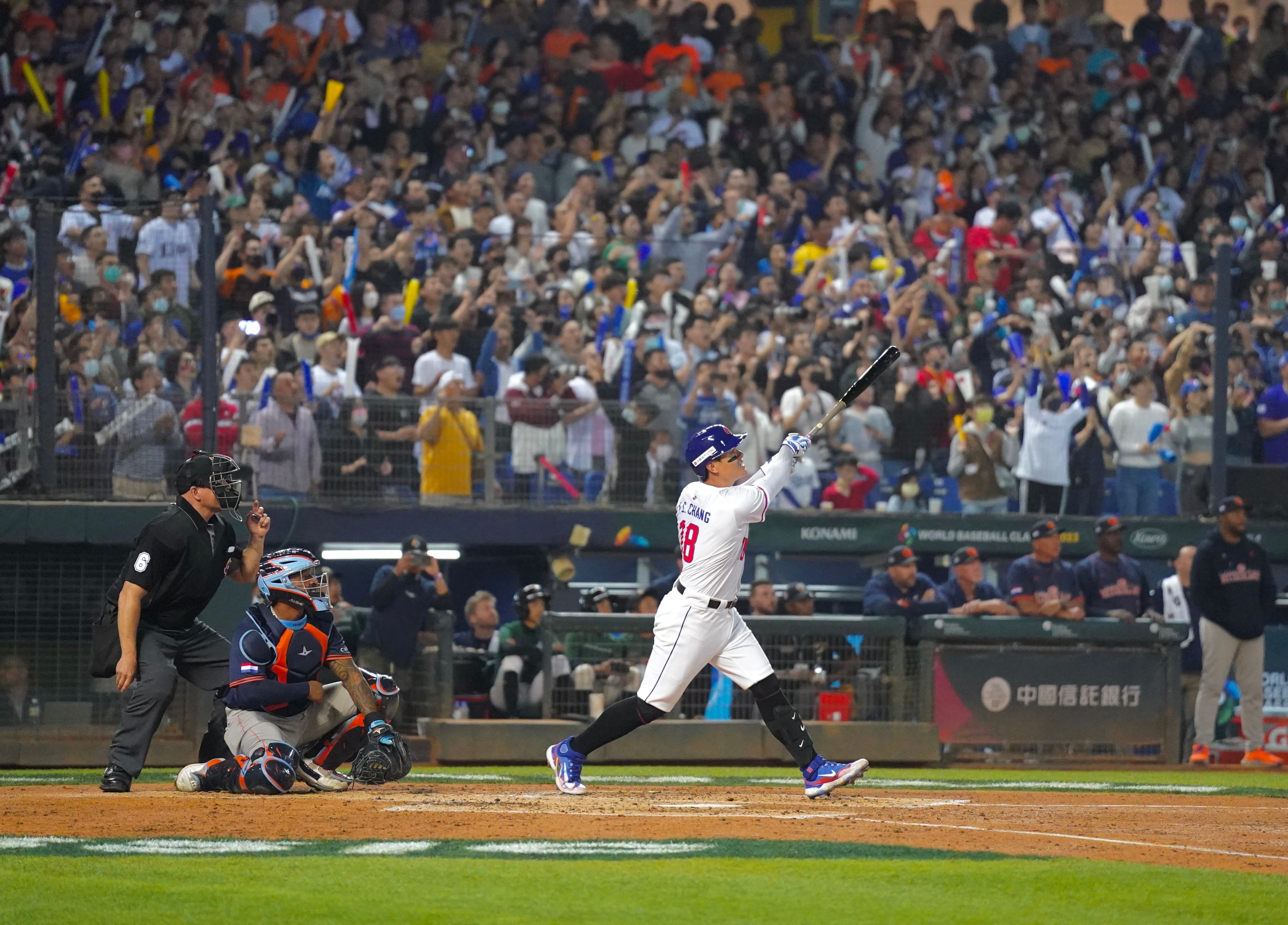 世界棒球經典賽WBC台灣隊昨(11日)晚迎戰勁敵荷蘭隊,二局下半林立敲出安打、張育成滿貫砲全壘打, 台灣隊一口氣灌入5分,最終以9:4擊退荷蘭。張育成轟出4分重砲時,全場球迷紛紛立正「敬禮」致意,而張育成也從球迷口中的「逃兵」晉升「國防部長」。