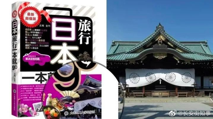 這本2014年出版的日本旅遊書,書封以日本美食、富士山、合掌村等圖片合成,近日被中國網友發現,書封右下角還印有日本靖國神社,引來反彈和抵制,目前中國網購平台皆已下架。