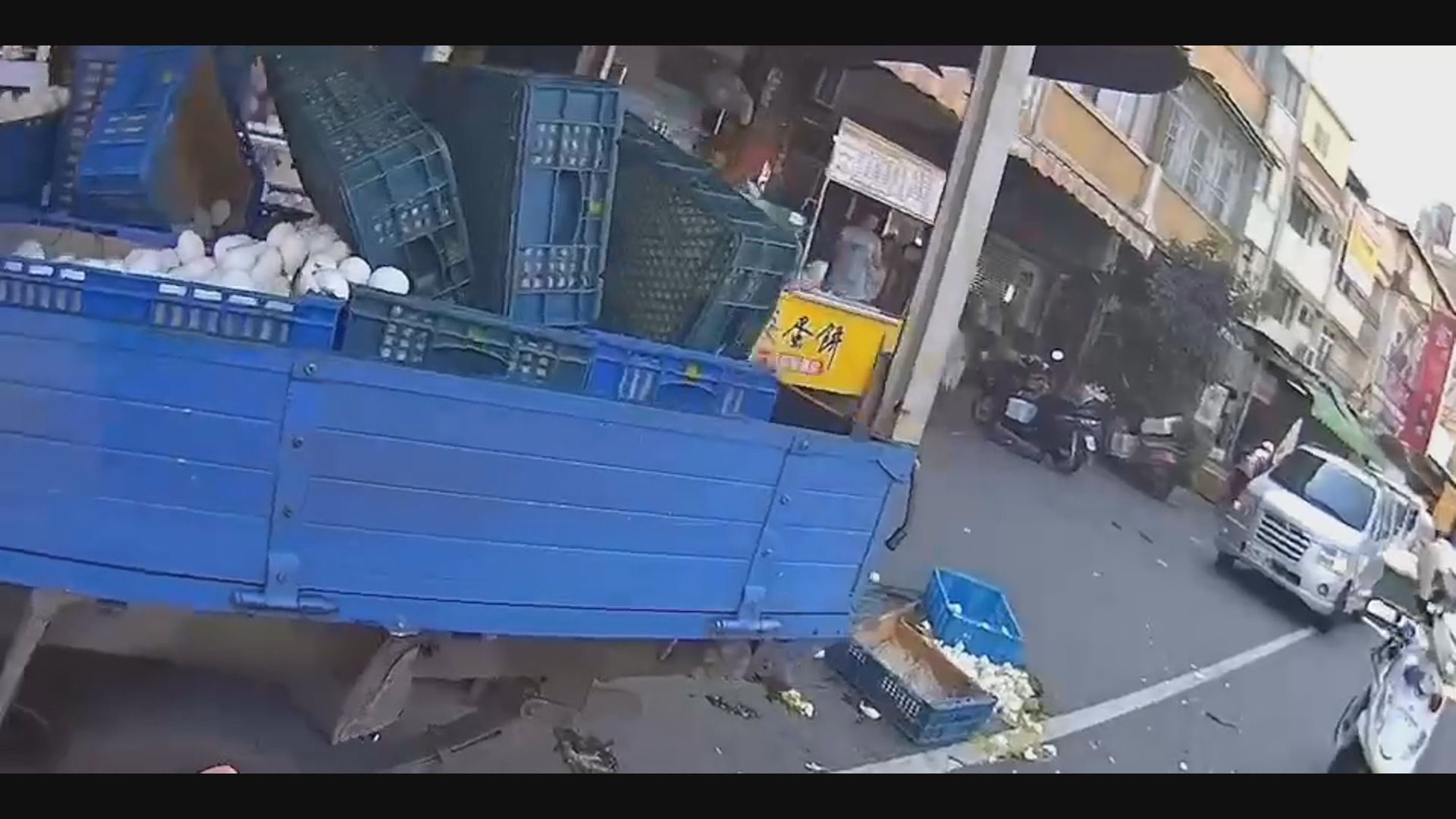 準備進貨的蛋餅業者傻眼,蛋都到店前了卻補不了貨,蛋商蘇女也說,車上雞蛋約18籃破損無法使用,每籃約200顆,共約3,600多顆,初估損失約2萬餘元,且現在蛋很難調,不知後續該如何補貨給下游業者。