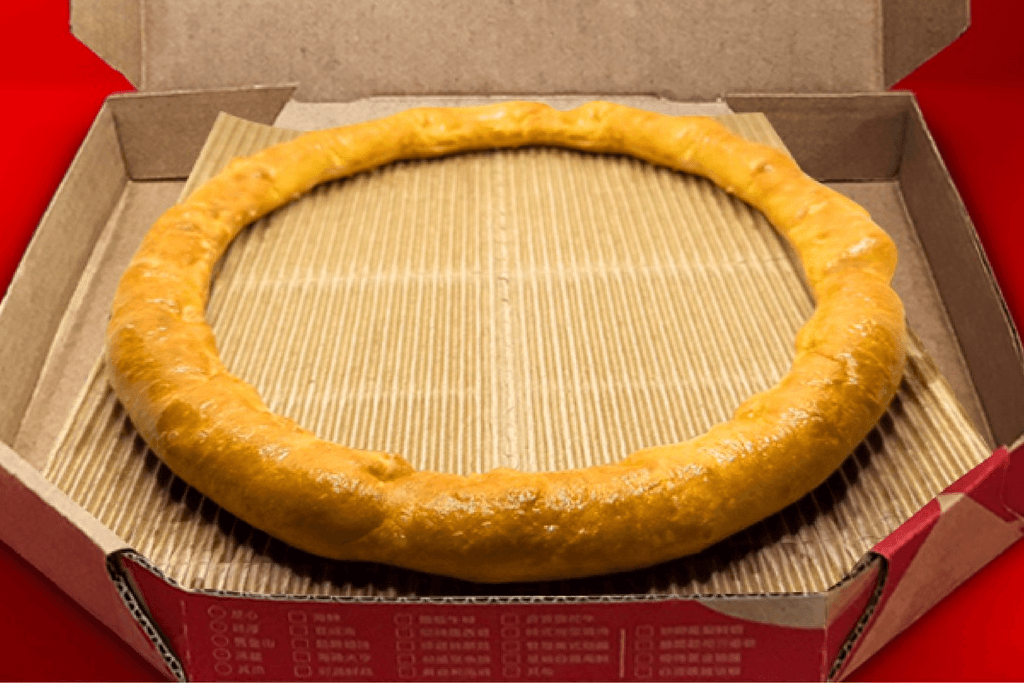 速食業者必勝客(1)日愚人節在臉書粉專發出「致歉公告」表示:「對不起⋯⋯必勝客不敢再開玩笑了!」並宣布開賣全新力作「零傷害披薩」,是款沒有食材、就沒有傷害的友善商品,只見整個披薩只剩最外圈的芝心餅皮,海報橫批「放空食材,立地成佛」。粉專更親自演示中空的「零傷害披薩」,可以當寶寶的收涎道具、健身環,還可以拿去夜市套圈圈。