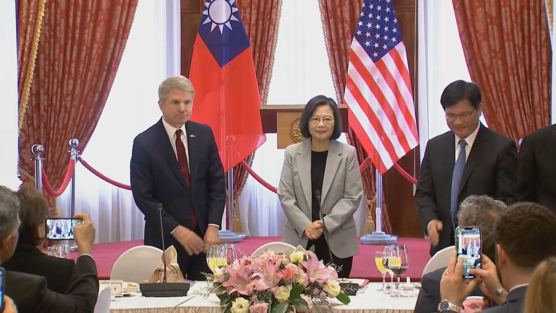 蔡總統拚外交馬不停蹄,昨(7日)晚上才回到台灣,中午就在台北賓館宴請美國眾院外交委員會主席麥考爾。蔡總統大力感謝美國跨黨派對台灣的支持,也一再強調民主國家站在一起的重要性,麥考爾還特別先以中文表示「我們愛台灣」。