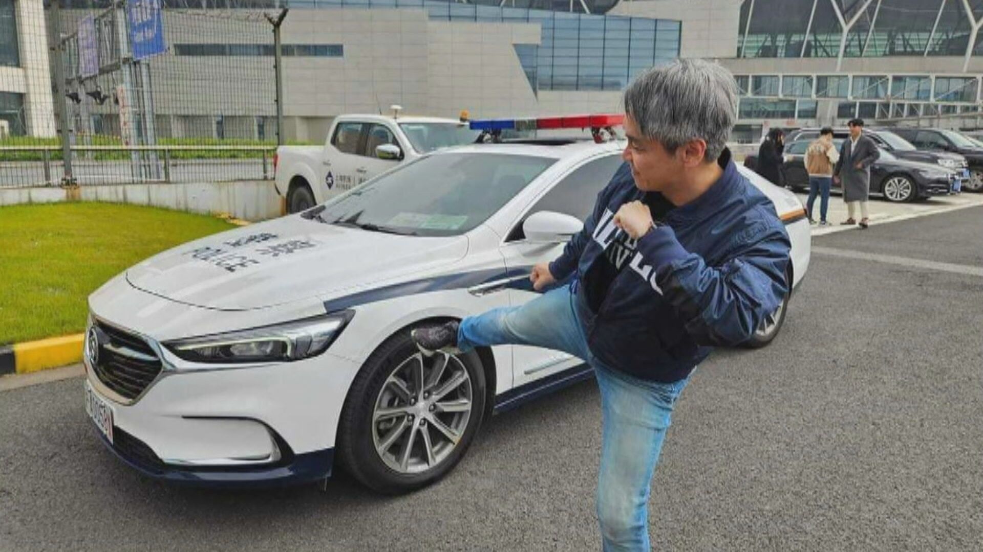 前總統馬英九赴中祭祖行在前日(7日)畫下句點,不只馬英九成焦點,現在連同當時陪同的隨行幕僚、政大法律系教授廖元豪也成關注焦點,因為昨晚(8日)在臉書發文,貼出他在上海浦東機場的一系列4張照片,照片中,廖元豪對著機場內的一輛警車,作出腳踹飛踢動作。