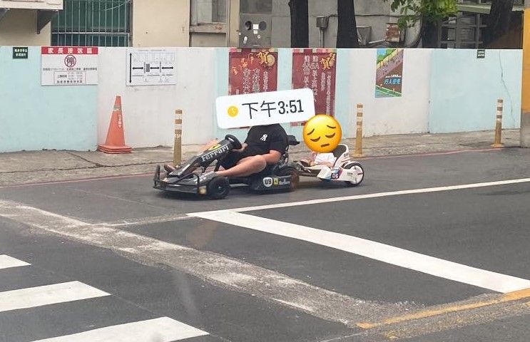而這名家長認為自己遭到公審,隨後也在社群承認卡丁車是他家的沒錯,還回應「路上行駛過程中,我也都是盡量靠最旁邊再跑,速度也都在10-18公里左右,盡量避開車多道路,右轉左轉我也會提前打好手勢,並且看前後左右方確認安全才轉」,強調單純只是帶小孩出門逛街。
