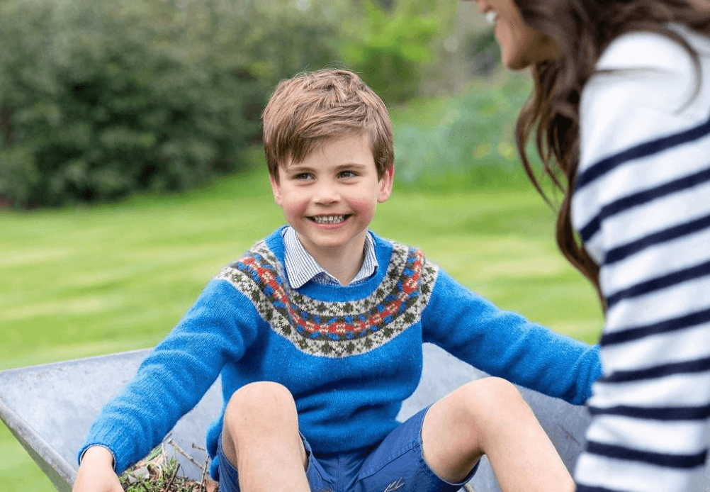 而威廉王子與凱特王妃的IG官方粉絲專頁「The Prince and Princess of Wales」,在22日也釋出路易小王子的近照,寫下「某人明天要5歲了!祝福路易王子有個非常開心的生日」,只見路易王子坐在一個舖滿植物的推車內,而握著推車手把的正是媽媽凱特王妃,母子2人都露出燦笑,玩得不亦樂乎,畫面十分溫馨。