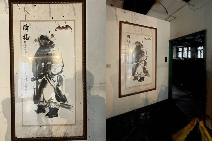 位於新北市新店區的法務部調查局本部,24日晚間發生火警,起火點為調查局1樓資通安全處辦公室,所幸救援即時,火勢迅速被控制,無人傷亡。警消事後進行火場鑑識,沒想到在一片焦黑的火場中,牆上一幅「鍾馗天師」畫像竟毫髮無傷。