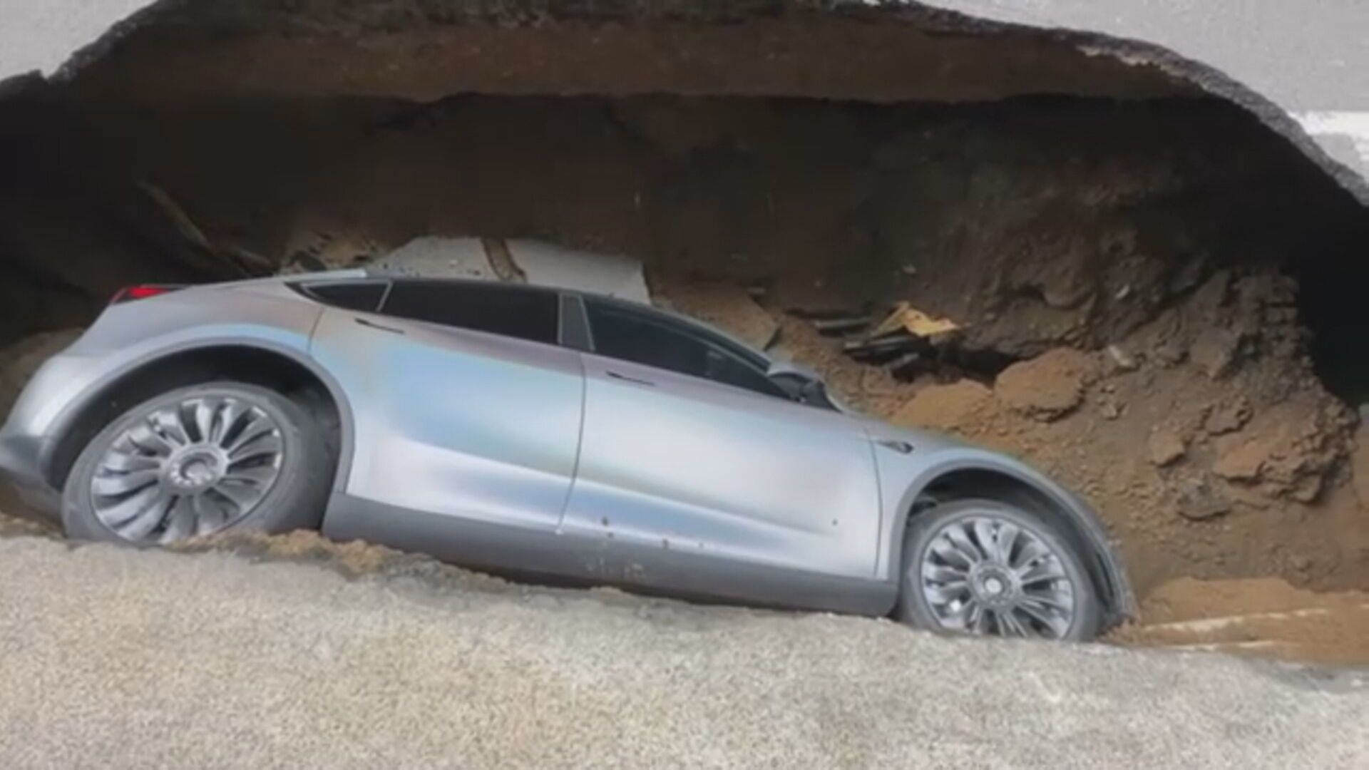 新竹縣竹北市莊敬六街某建案附近,在27日上午路面突然崩塌,導致原本停在上面的一輛特斯拉墜入其中,據悉這輛特斯拉交車不到1個月,購入價格約為230萬元,如今車子只能報廢處理,車主表示自己事發後受到驚嚇,難以入眠,且目前要找誰求償都還不清楚。