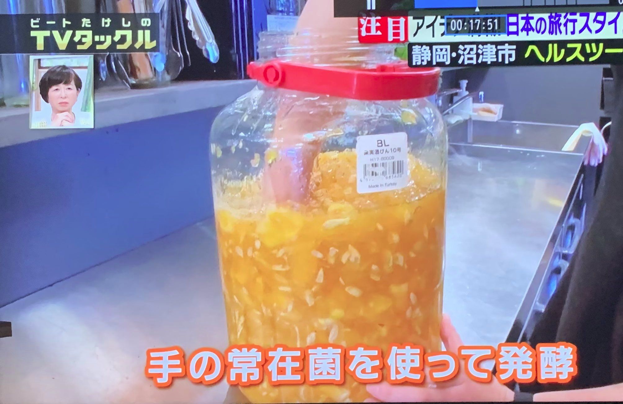 在日本播出超過30年的長壽綜藝節目《北野武的TV擒抱》,以邀請各方專家來分析生活中的科學現象為主軸。近日節目介紹一間來自靜岡縣的飯店──AWA西伊豆,該飯店標榜「用手指攪拌」的酵素果汁,員工於攝影機前說明,果汁透過自家生產的酵素糖漿,以及人體手上的細菌發酵結合後,泡澡前15分鐘飲用效果最佳,還能夠為人體帶來排毒的功效。
