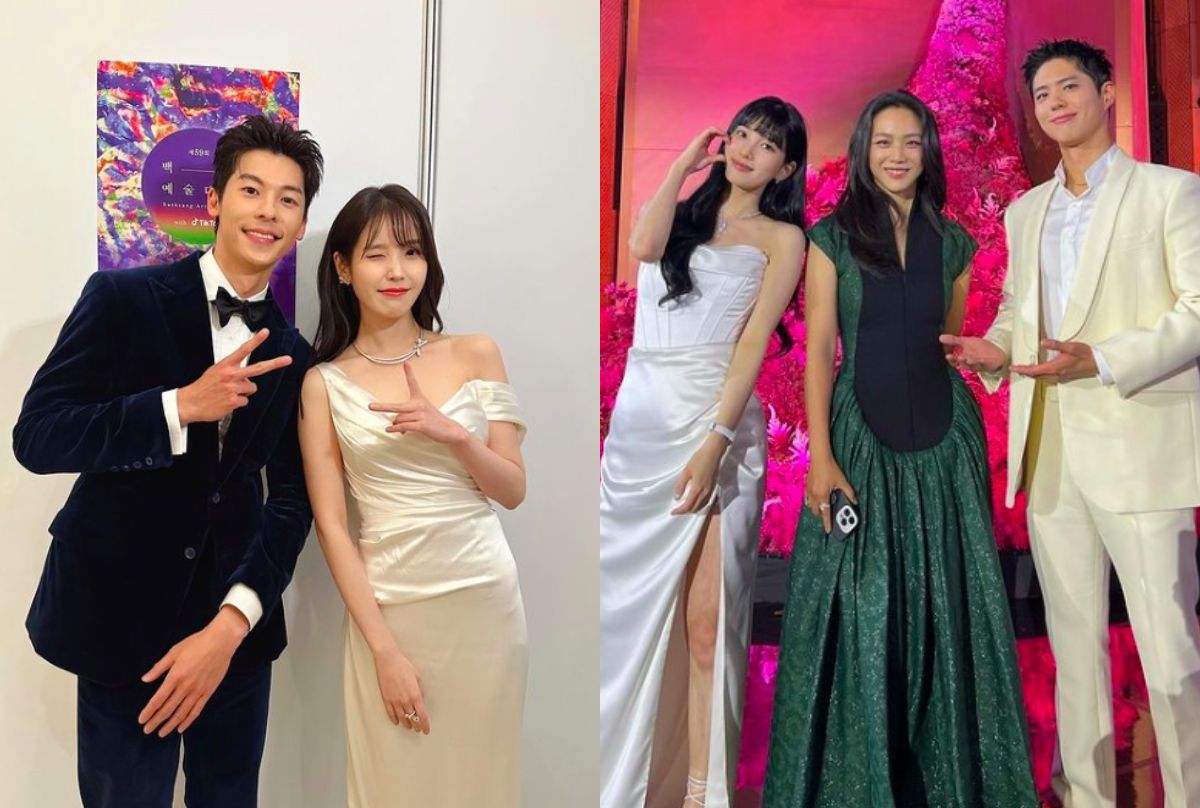 南韓「百想藝術大賞」28日順利落幕,典禮上星光熠熠,同時也有不少神級組合掀起話題,包括剛在典禮上二度摘下影后的湯唯,她和朴寶劍、秀智罕見同框,而台灣藝人許光漢受邀前往擔任頒獎人,不僅是台灣唯一受邀藝人,他事後也發出許多大咖合照,當中最大咖當數「南韓國民妹妹」IU。