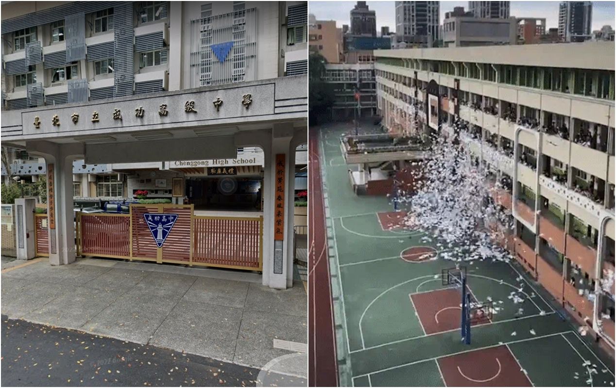 台北市成功高中流傳「丟書」儀式,每年高三畢業考結束之後,學生會將書本從高樓層丟往操場,象徵向書本說再見、告別高中生活。該校今(2日)畢業考結束,部分高三生集結到教室走廊,於下午4時將書本、考卷往操場傾倒,書本、紙張橫飛畫面驚人,校方對此則表示尊重,提醒清理乾淨即可。