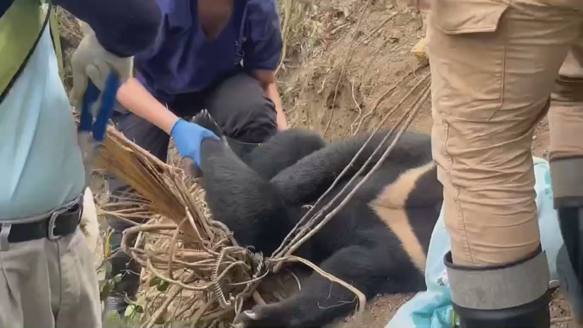 1日有農民在花蓮卓溪部落的茶園裡,發現一隻台灣黑熊受困在套索裡。花蓮林管處昨日(2日)接獲通報馬上前往救援,發現黑熊的左前掌第4指已經嚴重壞死,現場緊急截指,避免感染,處理完傷口後,將黑熊送到東部救傷中心。