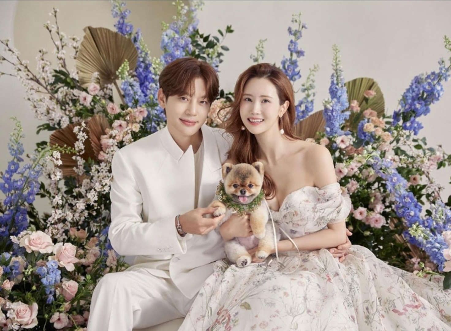 從李多海、SE7EN的婚紗照可見,兩人仍像熱戀情侶般甜蜜,其中一張婚紗照SE7EN穿著粉紅色西裝,李多海則穿著短版禮服,風格十分清新、可愛,另一張照片兩人依偎在一起,氣氛非常浪漫,隔著螢幕都能感受到他們散發出的幸福感,李多海的貼身魚尾婚紗也顯現她勻稱修長的好身材,兩人的愛犬也一同入鏡,紀念這美好的一刻。