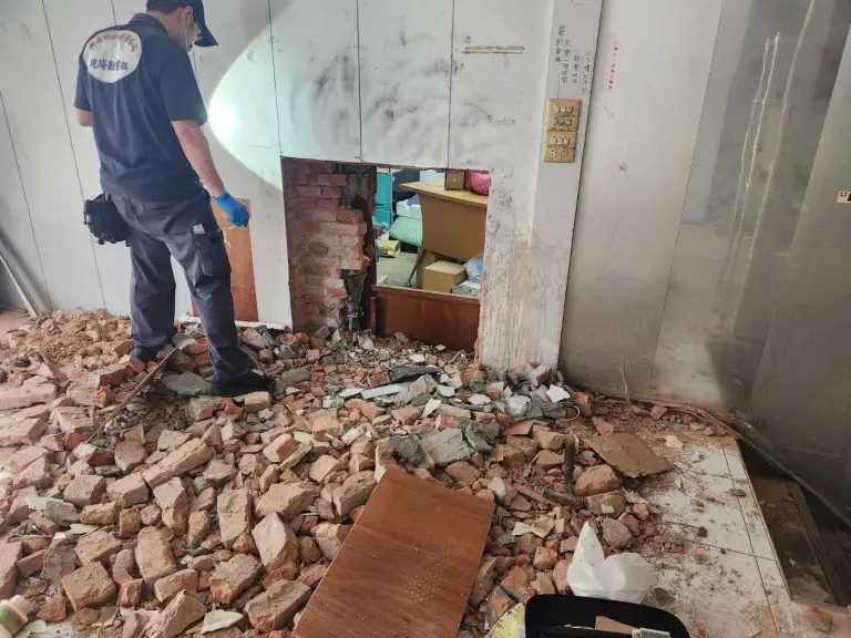 蘆洲警方獲報前往調查,發現銀樓隔壁的一、二樓,於四月中被一名蔡姓男子租走,蔡男還在門口張貼公告,表示要進行裝潢,請鄰居多多包涵,然而蔡男實際上卻是每天在二樓挖牆壁,還刻意將牆壁打到一定薄度後,等昨日凌晨再將其打通,進入銀樓行竊。