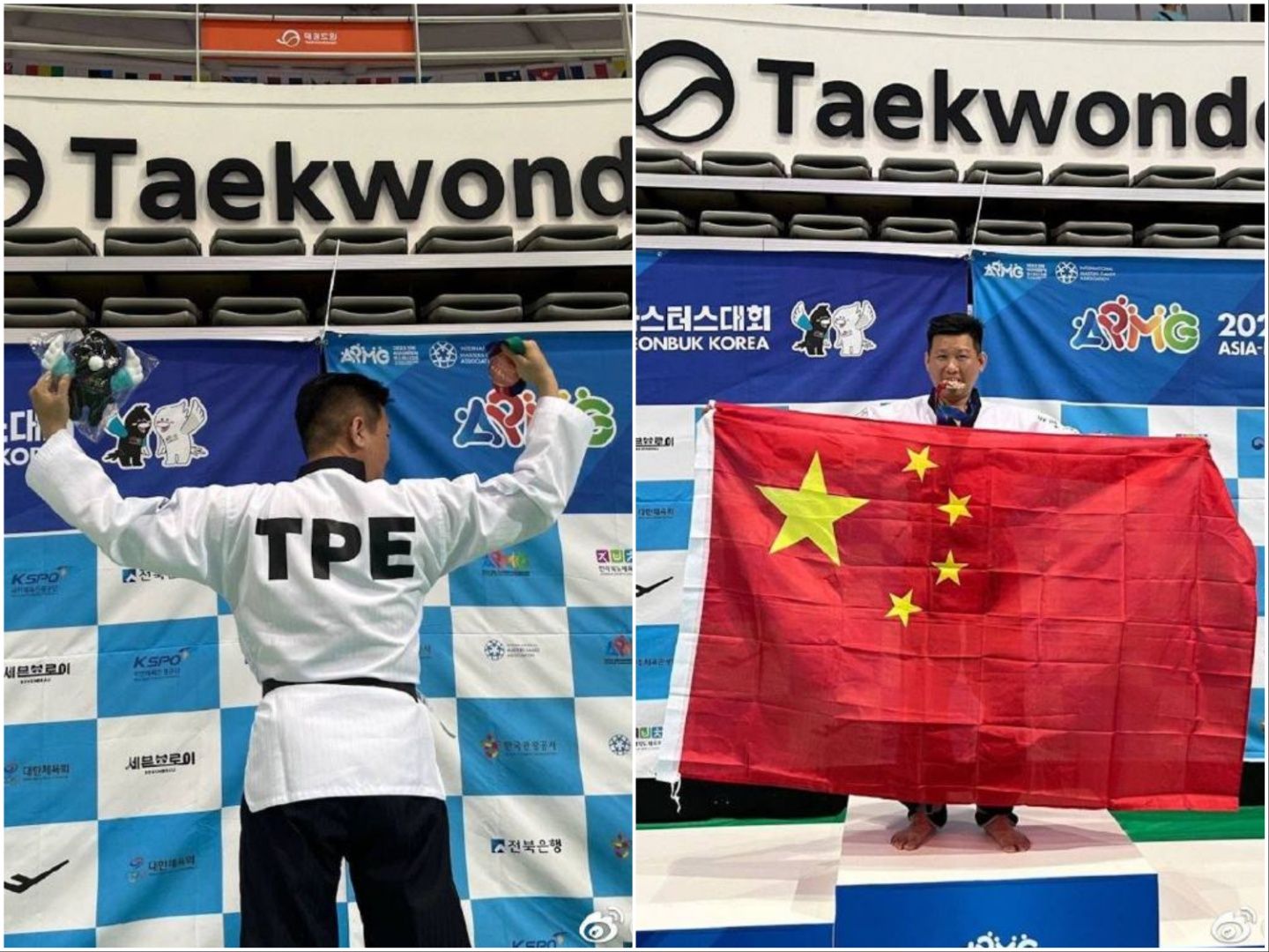 台灣籍跆拳道選手李東憲日前到南韓全羅北道,參加2023年亞太壯年運動會獲得銅牌,他身穿印有「TPE」字樣的服裝上台接受頒獎,卻突高舉「五星旗」拍照,引起中國、台灣網友熱議。體育署今(20日)對此表示:「李東憲以個人名義報名參賽,並非台灣代表隊選手。」