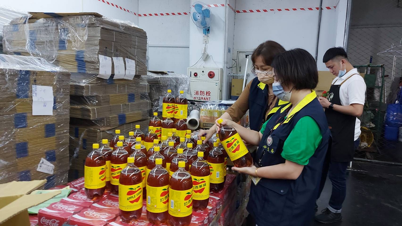 桃園衛生局獲報蘋菓西打出現白色沉澱物後,4月21日派員前往平鎮工廠稽查,從2,000ml及1,250ml包裝的成品中發現確實有白色不明沉澱物,最後一共封存41,237罐飲料,共計82.3公噸,並命該1號產線停止作業至產線安全為止。