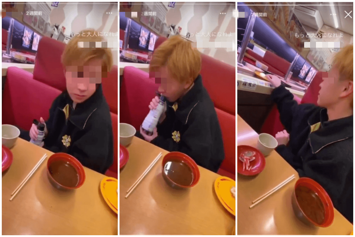 綜合日媒報導,高中生於今年1月在岐阜市壽司郎分店拍攝惡搞影片,趁店員不注意,大舔店內醬油瓶、茶杯,還用手指沾口水塗在迴轉台的壽司上,影片瘋傳後,外界除了撻伐高中生,也質疑起壽司郎的衛生管理,過去許多網友在壽司郎的惡搞影片被挖出,更掀起模仿效應,導致壽司郎商譽受損,母公司股價更下跌5%,1天蒸發160億日圓、當時約新台幣37.4億元。