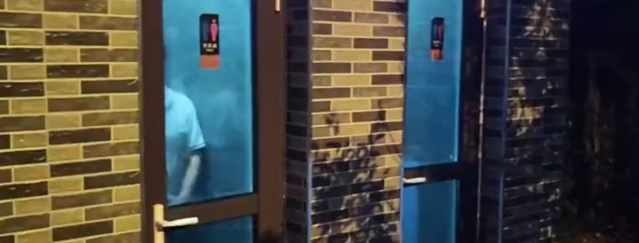 綜合中國媒體報導,位於中國山西省太原市的汾河濕地公園附近,在尖草坪區九豐路與匯豐街交叉處,有一間24小時的公共廁所相當奇怪,原因是這間公廁安裝的門竟然是透明的,就算把門關上,也能從外頭清楚看見裡面的一舉一動,讓人好不尷尬。