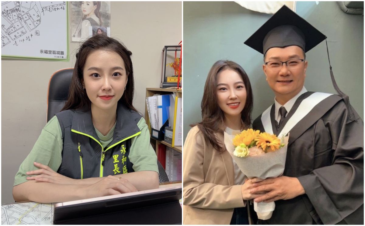 新北市永和區永福里里長陳紫渝,因長相神似南韓女星IU,有「最美里長」之稱,適逢畢業季,陳紫渝日前貼出和爸爸的學士照,讓大批網友驚呼「我看成沈玉琳…..」、「好像沈玉琳」,難得同框露臉的陳爸爸意外和綜藝男星沈玉琳撞臉。