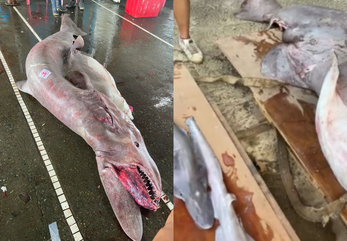 台灣海洋藝術館在臉書透露,這尾極為罕見的「哥布林鯊」(學名:歐氏尖吻鮫 Mitsukurina owstoni),昨日被漁民打撈上岸,重達800公斤,也是台灣有史以來捕到最大的哥布林鯊。因為頭部形似哥布林(長有尖耳的傳說中類人生物),因此被稱為「哥布林鯊」、「惡魔鯊」等。