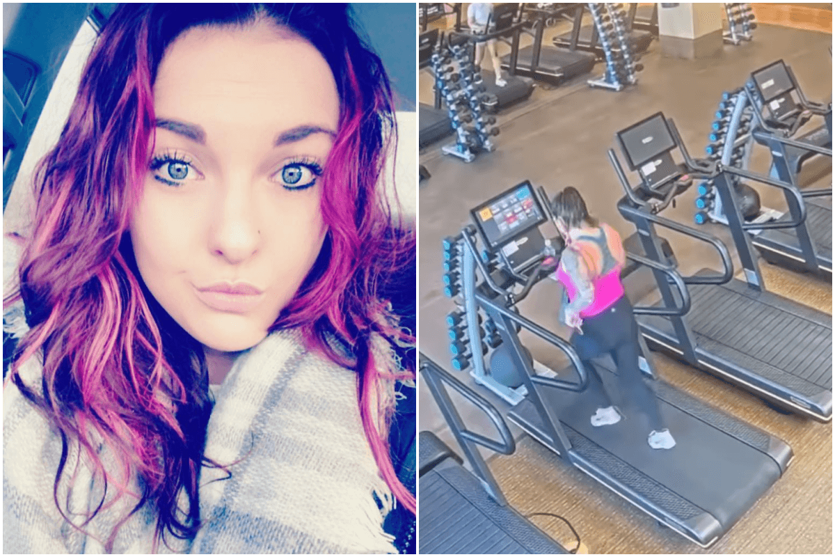 美國芝加哥一名26歲的女子愛麗莎(Alyssa Konkel),日前去健身房使用跑步機運動,不過跑到一半時她卻因為鞋帶沒綁好不慎失足跌倒,導致她只能用手緊抓手把維持平衡,而跑步機的速度相當快,愛麗莎的褲子與跑步機產生摩擦,不慎被「捲下來」,讓愛麗莎的臀部也跟著露出,而隨後愛麗莎也只能放手,跟著履帶的運轉被迫「滑下」跑步機。