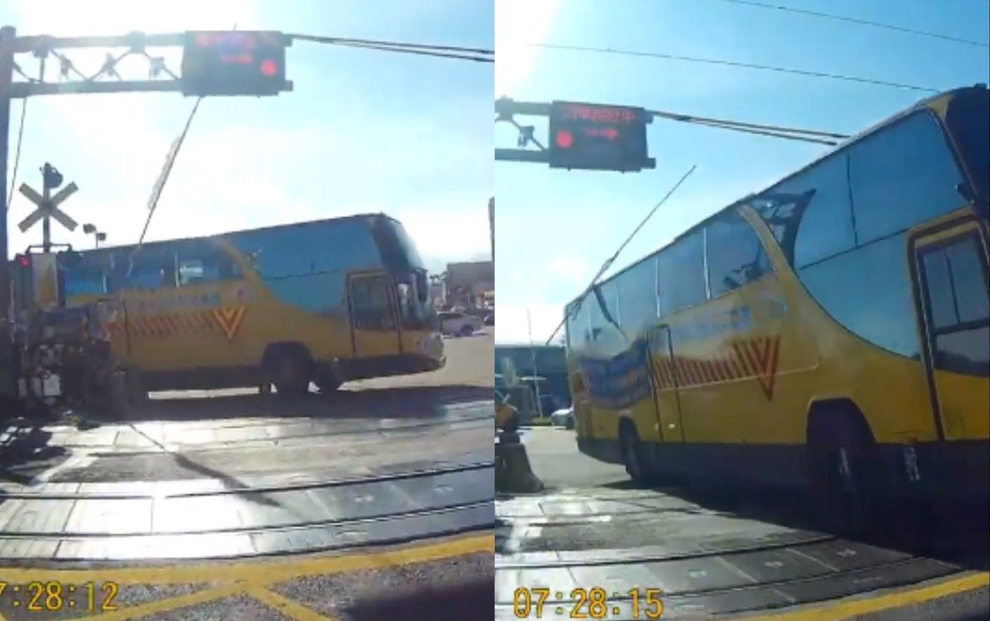 一名呂姓網友今日上午目擊該校車司機,在聽到平交道警鈴聲響起、號誌燈也亮紅燈,且柵欄已緩緩放下時,仍違規右轉硬闖平交道,車頂直接碰撞到柵欄,導致平交道的列車防護系統因觸發而發出警報,台鐵3005次區間快車因此鳴笛慢行而過,讓網友不禁感嘆,學生很守法,但教職員、校車及廠商卻很常違規闖越平交道。