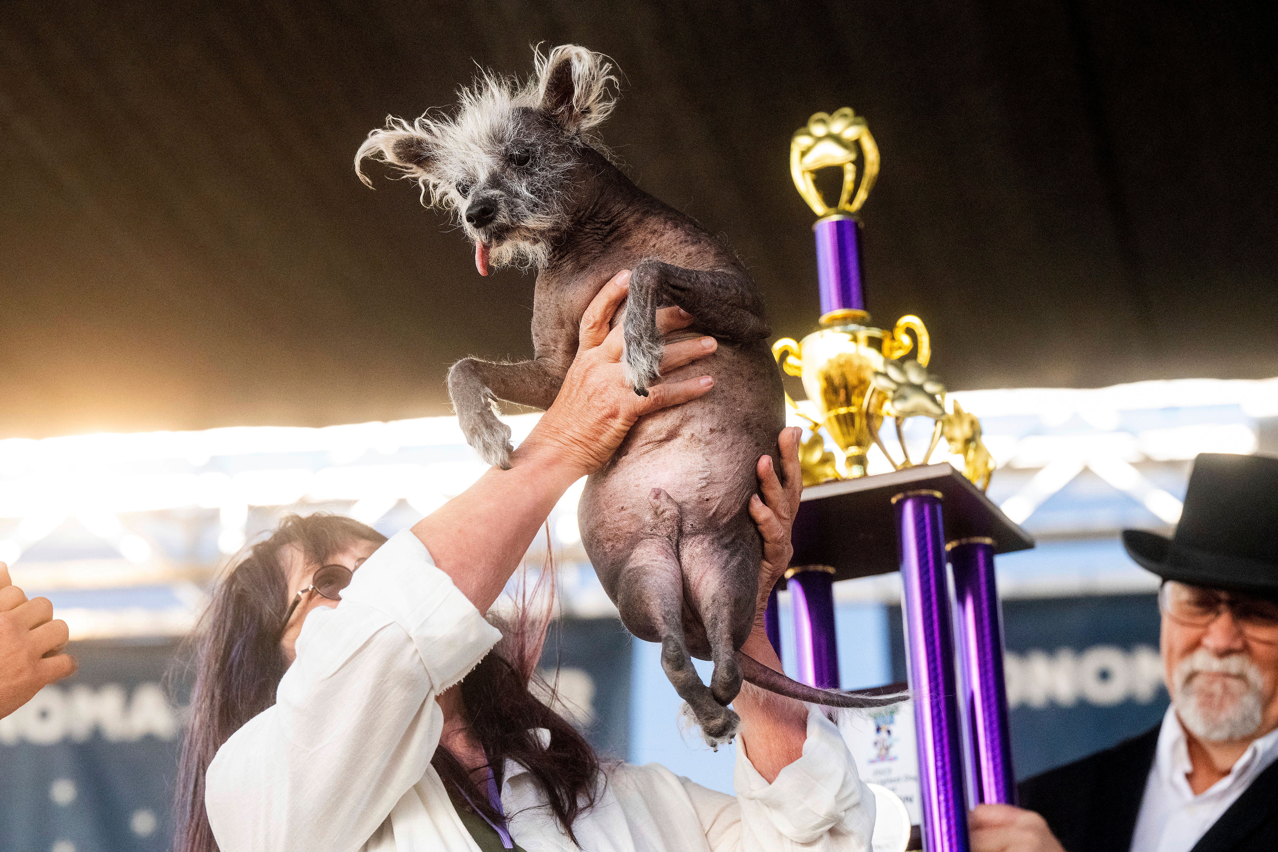 世界上出現新一任的「最醜陋的狗」!美國加州23日舉辦2023年最醜狗狗選拔大賽,一隻7歲的中國冠毛犬斯庫特(Scooter)榮獲冠軍,牠與主人埃爾姆奎斯特(Linda Celeste Elmquist)上台領獎時,露出開心表情吐舌拍照,而牠也擁有一段相當精彩的「狗生成長故事」。